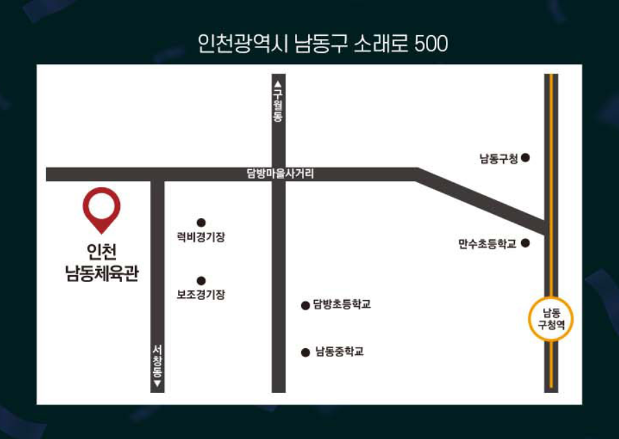 - 🚗 주차: 남동체육관 및 인근 유료주차장 이용 가능